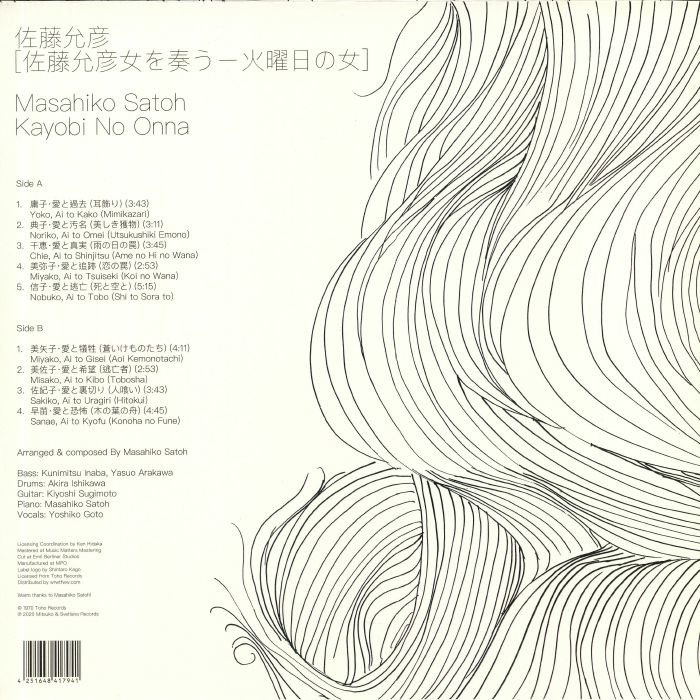 Like many jazz performers, Japanese pianist Masahiko Sato has accumulated a vast discography over the years. At the last count he'd released well over 80 albums, though few are quite as magical (or rare, for that matter) as his 1970 set "Kayobi No Onna". The music was initially composed as part of the soundtrack to a Japanese TV "suspense drama", before being collected together on an album that touches on traditional jazz, soul-jazz, modern classical, jazz-folk and jazz-rock. It's an impressively diverse set that sees Sato utilize all manner of intriguing instruments to create atmospheric, melodic moments that still sparkle all these years on.