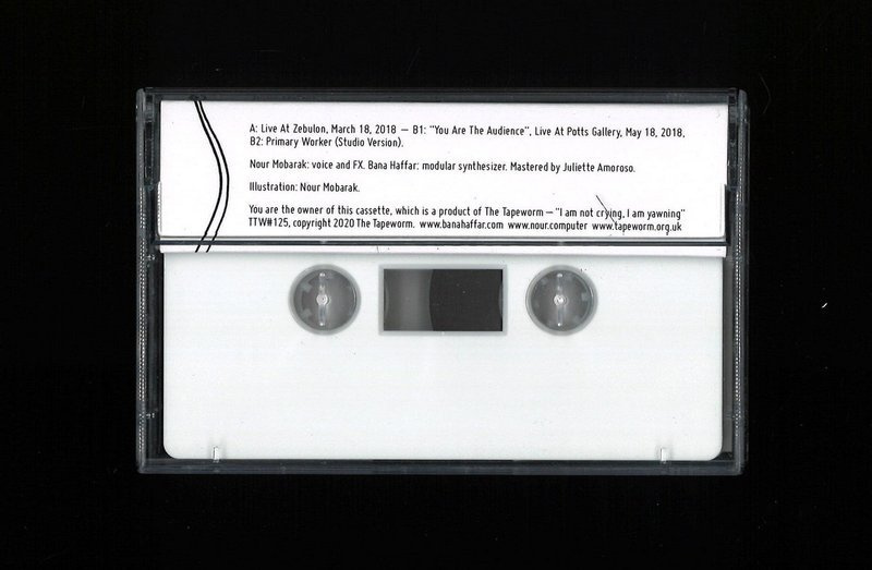Nour Mobarak: voice and FX. Bana Haffar: modular synthesizer. Mastered by Juliette Amoroso. Illustration: Nour Mobarak.