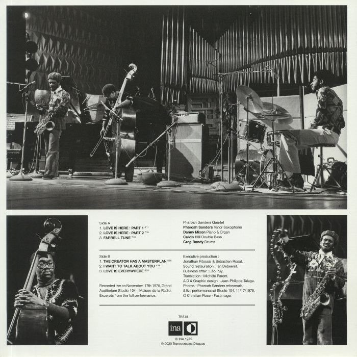 Transversales Disques proudly presents Pharoah Sanders - Live in Paris (1975). A never-before released ORTF recording performed live at studio 104, Maison de la Radio, Paris. First official release with the full permission and cooperation of the National Audiovisual Institute. Deluxe edition, Classic Tip-On Gatefold jacket, including exclusive liner notes and pictures. Mastered from the original master tapes.