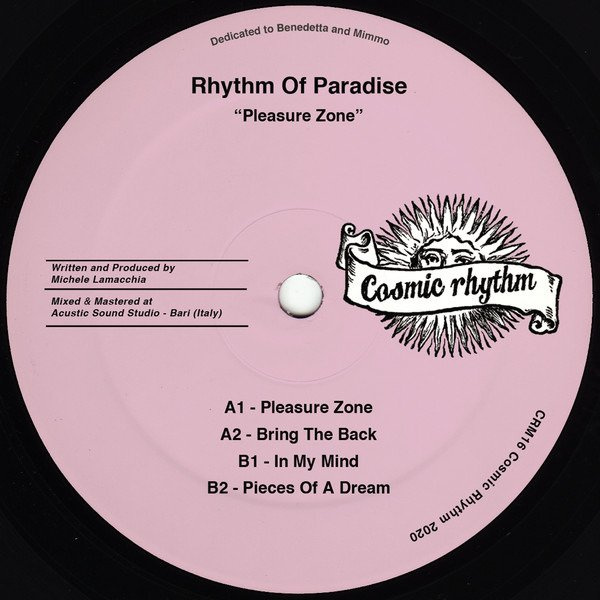 Over the last four years, Cosmic Garden's Cosmic Rhythm imprint has established itself as a must-check outlet for all those interested in the dreamier, hazier and melodious end of the deep house spectrum. The label's particularly loved-up and intergalactic approach can be heard loud and clear on its' latest four-tracker, which comes courtesy of regular contributor Rhythm of Paradise. The Bari-based producer first opts to combine jacking, Chicago-style grooves and wonderfully deep electric piano chords on "Pleasure Zone", before flexing his revivalist Italian dream house muscles on glassy-eyed, Loon bird-sporting treat "Bring The Back". He bleeps his way through shimmering, ultra-positive deep house pastures on "In My Mind", before heading high into the stratosphere on rushing EP highlight "Pieces Of A Dream".