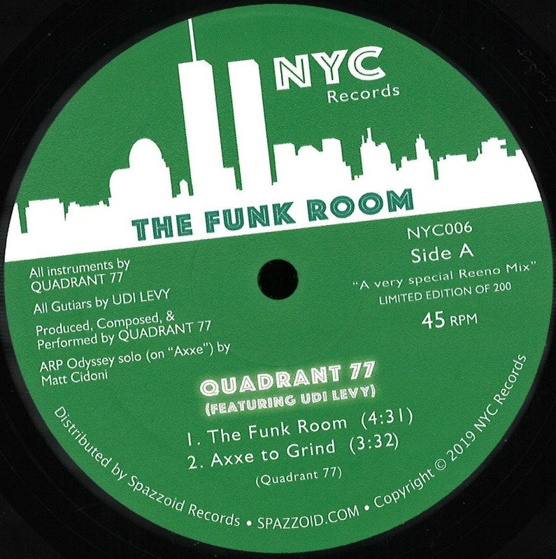 NYC RECORDS proudly presents, “The Funk Room"… Our latest E.P. features 4 collaborations with jazz/rock guitarist extraordinaire, UDI LEVY. 3 of these tracks came from our self-titled album, while the other track first appeared on “Movie Music, Vol. 2″. One can quickly hear that Udi is quite adept in both jazz/funk & rock styles. His playing, combined with Q77’s synths and drum programming makes for a very funky experience. As before, this pressing is STRICTLY LIMITED TO 200 Copies Worldwide.
