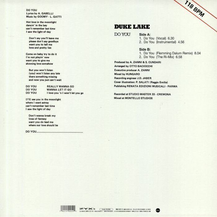 Italo heads take note - here comes a sought after reissue of a classic 1983 burner from Duke Lake. Like all the best Italo, Duke Lake has but a few records to his name, but this perfect stomper is more than enough of a legacy to lean on. Originally released on Memory Records, this new version of "Do You" on ZYX features two previously unreleased mixes, one of which is a deadly remix by Flemming Dalum who ramps up the electro-disco fierceness of the original in stunning fashion. "The Ri-Mix" brings an almost trancey lead and a key change into the mix, making it one for the clubbier DJs to get busy with.