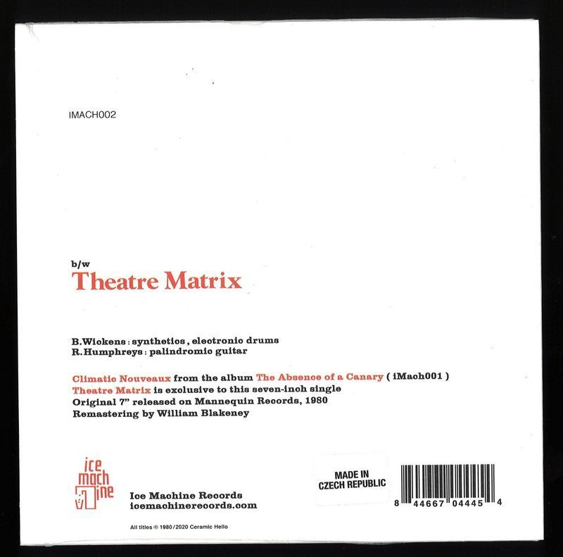 A new sub-label of the longstanding Canadian electro imprint Suction Records, Ice Machine — focusing on old-school wave/post-punk sounds — continues its Ceramic Hello reissue campaign with the 1st-ever reissue of their 1980 7” debut, “Climatic Nouveaux”.
