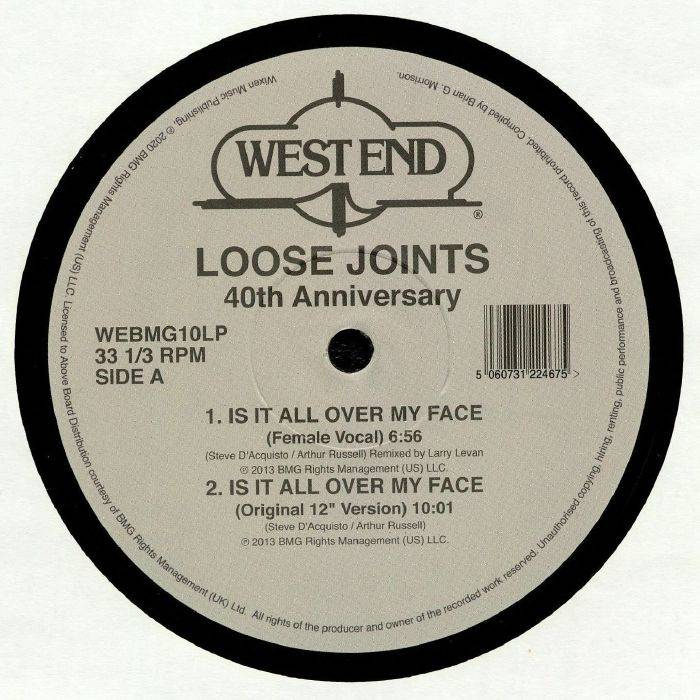 The collaborative team of Arthur Russell and Steve D'Acquisto crafted some of the best wonky disco not disco cuts during their short lifespan and 'Is It All Over My Face' is one of their crowning glories. Collected here, to celebrate the 40th anniversary of this gloriously weird record, are all the best versions from then, and now. Even a quick dig in the archive yielded some treats with the male and female acapella appearing for the first time EVER, featuring on a specially 33rpm cut 7" alongside Larry Levan's promo 7" mixes. Also, the instrumental version has never been released before, but it is here for this very special limited package in it's full, unedited glory. This is one for the heads, an essential do-not-miss RSD special edition for those who are still 'love dancin' 4 decades later, housed in a classic special West End disco-bag. Don't sleep!