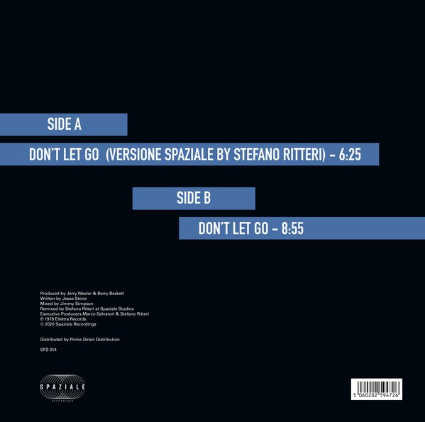 A 1978 masterpiece and certified classic from the Paradise Garage era, Tony Orlando’s ‘Don’t Let Go’ gets the official remastered reissue treatment from Spaziale Recordings. One side contains a killer Versione Spaziale laid down by Stefano Ritteri and the flip holds the original remastered, extended version. Uplifting synth, string and horn heavy disco with an exuberant vocal to fire up any dancefloor, Tony Orlando’s ‘Don’t Let Go’ is the kind of record that has that innate strut hardwired into it. One that puts a smile on the face and swagger in the step, whether it be striding down the sidewalk or letting loose in the club. Rework wizard Stefano Ritteri also serves up a cosmic disco interpretation on the A side. Opting for stratospheric synths in place of Tony’s vocals, supplemented with a driving beat and looped up chants of ‘Don’t Let Go’, it’s a monster of a cosmic dub.