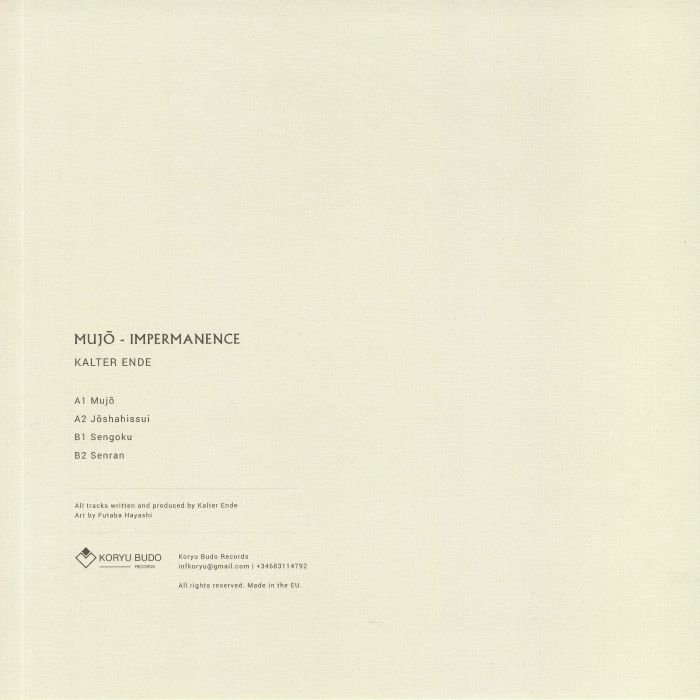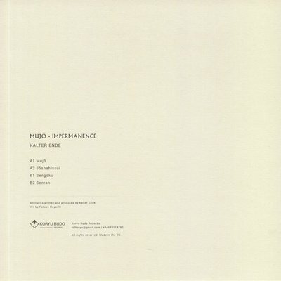 In these turbulent times we have managed to release six pieces of wax to date.This is something to be proud of, and of course we are. For this sixth slice of plastic we have Kalter Ende on board and it’s a real pleasure. From his bunker hidden somewhere in the middle of the peninsula, he runs his label Concerns Music and his mastering studio Reborn. On the production side he has lately gone into modular, and you can clearly feel the machines in his productions and in his amazing live act. For this release he has cooked up five cuts of modern and complex techno, carefully crafted, nothing easy or predictable. Mujo, the opening track, is a clear example. Jōshahissui follows slow paced grooves, crispy analogue percussion, linear hypnotic sequences and a wise and dynamic arrangement. You can feel the circuits singing in this one. Sengoku introduces distortion and harshness, a diffused kick drum and processed synth lines running together from the beginning until flanged sequences come on top, a weird marriage of overdrive and deepness. Closing the release, Senran explores the profound side of techno, clear synthetic drums, liquid synths, elastic bleeps, again on a complex and wise arrangement. As digital bonus we include the track Ran, again a precise electronic workout made of continuous synth lines and sharp rhythms. Five timeless pieces of danceable electronic music, away from trends, far from the easiness, done by professionals for professionals. Touchable, collectable and physical as every piece of vinyl is.