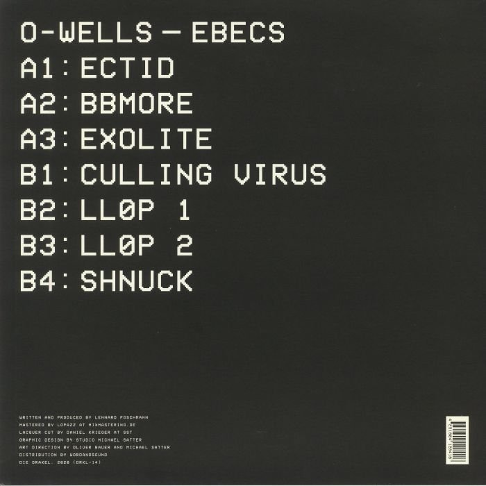Lennard Poschmann returns to Oliver Hafenbauer's Die Orakel label with a brand-new EP under his O-Wells alias. 'Ebecs' showcases the Robert Johnson resident's subtle, distinct approach to Detroit-ish, IDM & ambient-influenced electronic music.