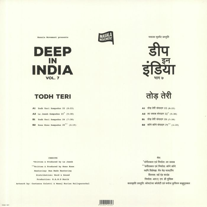 The world may have come to a halt these days. However, Todh Teri & his international bunch of merry pranksters never stop digging the rich Indian cinema music back catalogue. With Deep In India Volume 7, they have emerged & presented their best work for a globally keen audience. The first on this record - Sampadan 22 - is an italo cut, reminiscing the glittery disco divas of the 80s & beyond. The disco fever continues with Sampadan 23 where brand new disco prankster La Jawab reworks the quintessential Indian cinema classic track - with an ever cascading French touch. Todh Teri slows down the platter with Sampadan 24, and turns up the acid on a deeper interpolation of a 90s Bollywood chartbuster. And finally with Sampadan 25, Deep in India repeat offender Kone Kone flips nostalgic Indian dreams into head nodding boom bap beats. Brand new music for a brand new world - waiting to fill your bodies, minds & soul - with that funky goodness that you need.