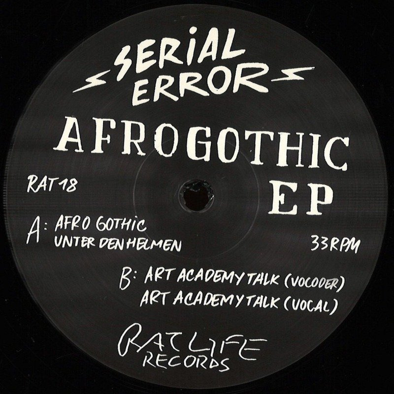 Serial Error was founded as a New Beat project when Jacob Korn was asked for a submission to the 'Our Beat Is Still New' compilation series on the Belgian We Play House label in late 2014. Knowing the retro-experienced skills of his label mates from Uncanny Valley, he teamed up with Credit 00 & Sneaker and they produced Drum Abuse, a track that finally became the cue for their first full 12'' maxi single in 2018 on Rat Life Records; a label curated by Credit 00. Now they keep on malfunctioning with a 4-tracker featuring the bizarre title Afro Gothic. The eponymous track was the first shot when they got together for a second EP in Jacob's studio in now demolished premises (the typical daily Rat Life). The slow, steamy roller captures the amateurish live percussion skills of Credit 00, while - on the other hand - he played one of the manuals of Jacob's 'Son of GX' organ along with Sneaker playing the other manual of the leading voice synth. On top, they added a classic acapella - a sudden strike of genius - 'perfectly matching the solemn vibe' (in their opinion; artist quote). A2 'Unter den Helmen' is ripping off the same organ's preset drum patterns run through a brutal EQ. Talking of the 70s - a duet by two anti-nuclear activists from the German Sponti movement of the time became the theme of this politically charged protest song! Oh yeah, somewhere I had to paste the striking fact that all is mastered & sent via reel-to-reel at our TailOut studio. Check! B1 and B2 are two versions of the same song who share their lyrics drawn from school days. To be precise from the tacky Dresden art academy they both - Sneaker and Credit 00 - visited. The B2 of 'Art Academy Talk' features the typical Sneaker vocals on a 4/4 beat, while - due to Credit 00's lean towards electro - the B1 got the vocoder treatment while Jacob and Sneaker went for lunch. As Jacob came up with the bass riff on his Chroma Polaris, Credit fiddled the knobs of his Ensoniq ESQ1 like a rusty raver. The freaked out FX-sounds we can cherish thanks to the Pearl DRX drum machine; modded and played by Jacob Korn. Due to the odd look also fondly nick-named 'the VCR'. The Pearl, of course, not Jacob.