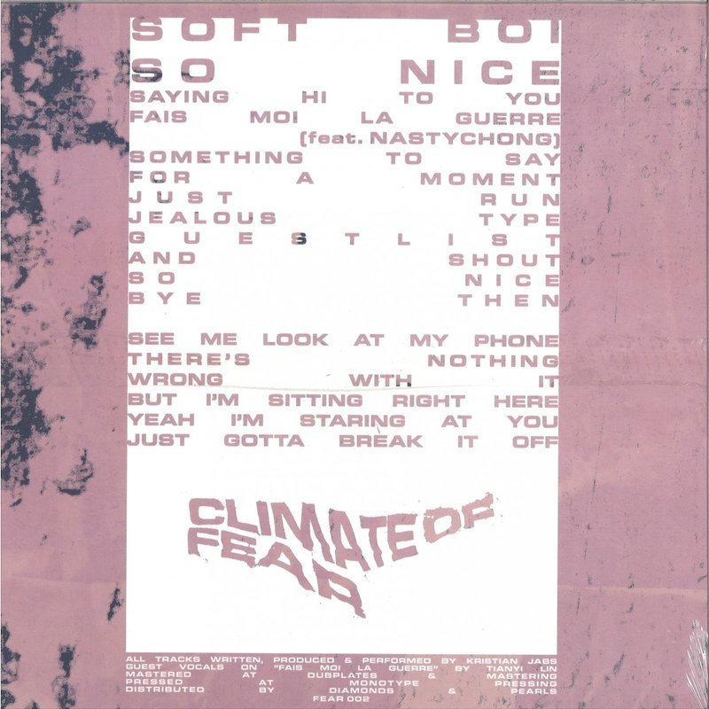 For its second release, Climate of Fear proudly presents "So Nice," the debut LP from Soft Boi aka Pessimist aka Kristian Jabs. Following 2019's sludge-crawl collab with Karim Maas and the eco-hellscape new age of Boreal Massif's "We All Have An Impact," Jabs turns his attention to a new nightmare: dating.