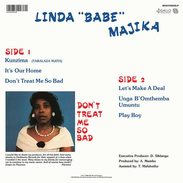 Once of the Hot Soul Singers, Don’t Treat Me So Bad was Linda’s debut LP as a solo artist. It was produced by Ace Mbuyisa of boogie-funk maestros Freeway and was originally released on Umkhonto Records in South Africa in 1988.