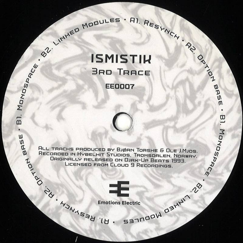 In the earliest days of his near three-decade career, Norwegian veteran Bjorn Torske released some rather fine Detroit and Sheffield-influenced techno on DJax-Up Beats, initially alongside Ole Mjos, as Ismistik. "3rd Trace", which was originally released way back in 1993, may well be Torske and Mjos's most potent and alluring release of all. Check first the galloping, sci-fi-fired Motor City tech-funk of "Resync", before focusing on the weighty, bleep-laden surge of "Option Bass", a kind of Norwegian take on Yorkshire Bleep & Bass. "Moonspace" is a brilliant tribute to Derrick May's mid-to-late '90s Transmat sound, while "Linked Modules" is altogether deeper and dreamier, with the pair - now Norwegian scene legends - peppering a tactile techno groove with bright and breezy melodies. In a word: essential.
