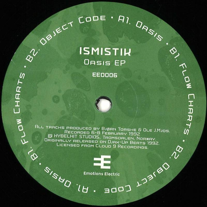 Emotions Electric complete their hat-trick of Ismistik reissues with this seance EP, 'Oasis', which first came in 1991 on iconic Dutch label Djax-Up-Beats. It finds Bjorn Torske in more house-leaning mode than he was on some of his other releases, but the quality levels remain high. "Oasis" is a nice deep cut with heartwarming piano chords and loose, raw drum work. "Flow Charts" gets more wired and wiry, with sheet metal snares and warped synths mangling your mind. Last of all, "Object Code" bangs the box with its futuristic, sci-fi melodies and far-sighted pads, all conjuring up the classic sounds of Detroit.