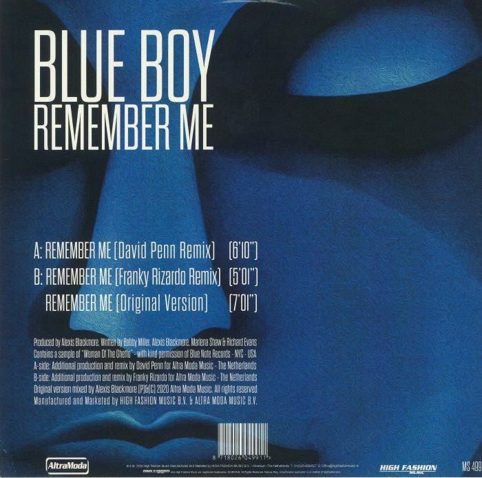 23 years have passed since Blue Boy (AKA Scottish producer Lex Blackmore) delivered one of the biggest club and radio hits of summer 1997, the Marlena Shaw-sampling "Remember Me". Here the familiar favourite is given a new lease of life via a pair of fresh 2020 re-rubs. David Penn steps up first, expertly layering sustained Wurlitzer organ chords, gospel-style, clipped disco guitars, piano riffs and the famous vocal sample over a thickset, 21st century house groove. Frank Rizaro's remix is even heavier, with Shaw's vocalizations riding a beat that's closer to tribal techno than deep house. The head-nodding, toe-tapping original 1997 mix completes a rock-solid package.
