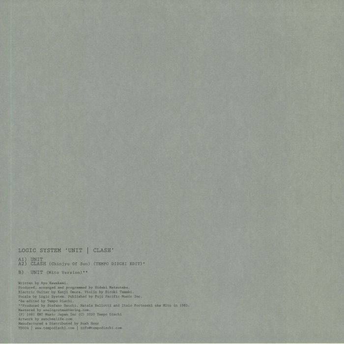 Recorded and released in 1981, Logic System's debut album "Logic" has long been considered a proto-electro/leftfield synth-pop classic: a set of unbelievably far-sighted songs and instrumentals crafted by some-time YMO engineer and collaborator Hideki Matsutake. This must-have EP offers-up one of the album's standout moments, "Unit", a bubbly chunk of psychedelic synth-chug blessed with French spoken word vocals and all manner of sparkling electronic sounds. The peerless original mix comes backed with Italo-disco outfit Mito's outstanding 1983 cover version - a more sprightly and spacey interpretation - as well as a brand-new re-edit of even more druggy and intergalactic "Logic" album track "Clash". In a word: essential!