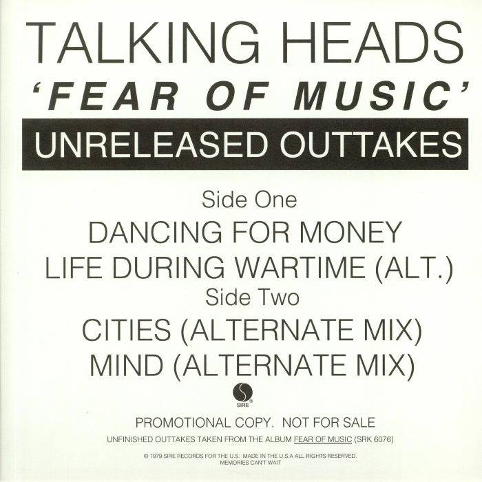 Here's something to get Talking Heads fans salivating: a fresh EP featuring previously buried, unheard alternative versions and outtakes recorded during the sessions for the celebrated New York new wave band's 1979 album Fear of Music. The EP begins with the completely unheard 'Dancing For Money', a typically undulating, off-kilter chunk of post-punk eccentricity that seemingly never went beyond the demo stage, before offering up a riotous alternate mix of the noisy, guitar-laden stomper 'Life During Wartime'. Over on the flip you'll find notably different arrangements and recordings of 'Cities' and 'Mind'; the latter, with its juju style guitar sounds and languid rhythm section, is particularly good.