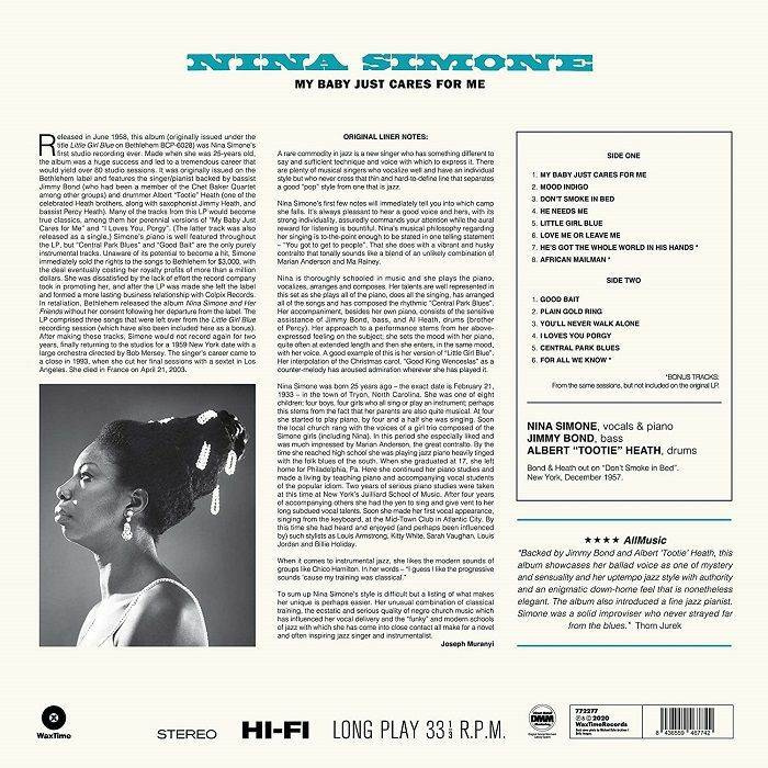 Limited edition 180gram premium vinyl pressing and 3 bonus tracks. Released in June 1958, this album (originally issued under the title Little Girl Blue on Bethlehem BCP-6028) was Nina Simone’s first studio recording ever.