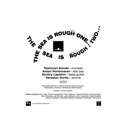"The oddest thing about this record is that it is cut on 45 rpm, so it's rather a 12" maxi-single than an LP. It contains the two parts of 'The Sea Is Rough' and they are quite different. Both pieces were recorded in a single day in March 2019 in Moscow. The first one (I gather around ten minutes long) is, for the most part, a heavy free wailing blast with strong electronic undercurrents, but towards the end shifts back into a melodic touch. The other side also starts chaotic but throughout it seems there is a bit more organization here, and it is easier to follow individual instruments. There is a battle between trumpet and alto sax going on; bass and drums eventually roll out a majestic groove and the two wind instruments find routes through electronic mazes and reach for the sky. This too is probably around ten minutes and I think that is too short. I would not have minded all of this to be longer, or perhaps a different perspective or two and be a full-length album. On a hot day in August this is perhaps quite the drain of energy; or is it the extra kick. I should play it again and find out."