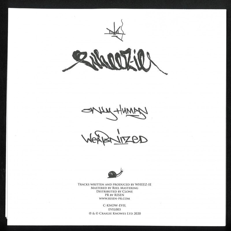 Wheez-ie joins Craigie Knowes offshoot C-KNOW-EVIL with bone-shakin' breaks, piercing synths and flavours channeled from 90s UK rave-culture. 'ONLY HUMAN' sets the record straight with chopped and distorted breaks laden with carefully selected voice clips and samples - building a haunting wall-shaker built for any dancefloor willing enough to test their stamina. 'WEAPONIZED' continues in a similar vein, injecting acid into the heart of the signature Wheez-ie sound. A record for the bolt of heart, stray carefully.