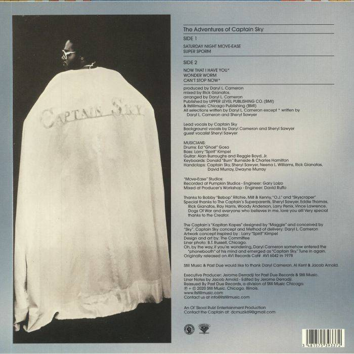 In 1977, at just 21 years old, Daryl L. Cameron aka Captain Sky recorded his first album “The Adventures of Captain Sky” with his bandmates after his father gave him $5000.00 to finance a studio session. Daryl then went to Eddie Thomas (of Curtom Records and Dogs Of War fame) who arranged to get the album signed and released on AVI Records in 1978.
