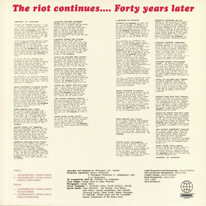 Nairobi, Kenya, 1978. In the Phonogram Ltd. music studio, the popular Congolese Rumba band Les Mangelepa is finishing a session. Things are going well: they have recorded all the music they planned and still have an hour to kill before giving back the studio keys. How about improvising one last song on the spot? And this is how “Nyako Konya” was born. An incredible 9 minutes hypnotic jam, that’ll eventually become one of their biggest tunes, earning them a Gold record and international acclaim throughout Africa. Meticulously restored and remastered by French engineer Nicolas Thelliez, the original version is featured here together with remixes by three talented producers: French House/Disco producer extraordinaire Yuksek and his wall of sound skills, Netherlands’ Afro lovers and world famous studio maverick Umoja delivering a space dub Lee Scratch Perry style, and last but not least, the trademarked syncopated stabs from Brooklyn’s Uproot Andy.