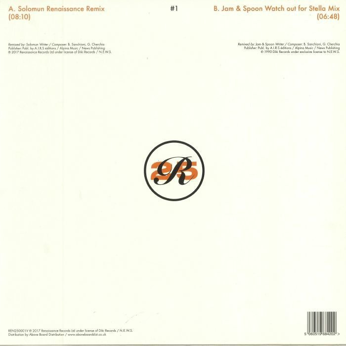 Revered UK label, tastemaker and authority Renaissance, the label that has not only been at the forefront of the electronic DJ scene but documented its navigation into popular culture have honored a landmark 25 years by inviting Hamburg based DJ and super producer Solomun to rework a timeless classic - one of a number of tracks that shaped the labels early years. The timeless classic Jam & Spoon Watch Out For Stella Mix is featured on the B Side.