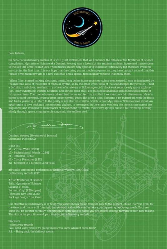 On behalf of re:discovery records, it is with great excitement that we announce the release of the Mysteries of Science compilation. Mysteries of Science aka Dominic Woosey was a fixture of the ambient, ambient house and trance scene in the late 80s until the mid 90's.