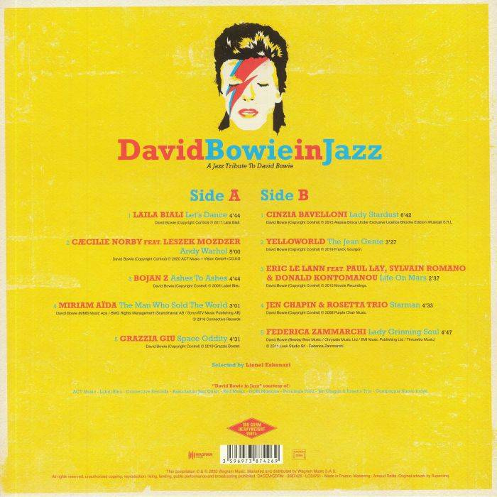 To mark a sombre five years since the world lost music genius David Bowie, this new compilation has been put together by a journalist from Jazz Magazine. On it he has selected some of contemporary jazz scene's best talents to pay tribute to the legendary artist with a selection of new and original tunes. The mood is gentle and soothing throughout with names like Keren Ann, The Puppini Sisters, Mike Garson, Bojan Z, Delta Saxophone Quartet Jen Chapen and Rosetta Trio, Caecilie Norby, Franck Wolf, Yelloworld and Eric Le Lann all contributing.