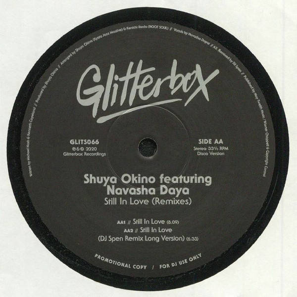 A swelling, string-drenched slice of soulful disco, Kyoto Jazz Massive co-founder Shuya Okino’s 2011 release ‘Still In Love’ remains a hugely in-demand cut for discerning selectors, thanks to its life-affirming vocal provided by Navasha Daya and lush instrumentation. Now Glitterbox Recordings deliver a specially curated 12” package of this record box essential, as this enduring modern-day classic is given a number of re-works from dance’s A-List. This package features mixes from true DJ’s DJ The Reflex, Berlin duo Kyodai, and house legend DJ Spen, which are joined by the blissful original, illustrating the versatility of a truly special record.