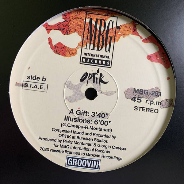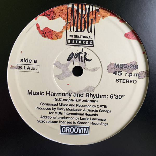 After the big success of the reissue of MBG EP ONE, Groovin Recordings is proud to introduce the release of OPTIK Music Harmony & Rhythm, another great EP originally released in 1991 under MBG International Records. Optik is the alias of Giorgio Canepa and Ricky Montanari, two of the most talented italian producers from the early '90s italian underground-house movement. In this EP we find two killer deep-house tracks, Music Harmony And Rhythm and Illusions, two great examples of the italo-house touch of the early '90s that we found in a lots of other productions by MBG, Don Carlos and Key Tronics Ensemble, to name a few. Illusion is also sure an epic track, it was the last disc played at Vae Victis (Misano, Italy) and the first disc played at Novenove (Gradara, Italy), two of the most famous italian after hours of the 90's era. Fully re-mastered, DMM cutted, re-pressed & re-released for 2015 in it's original format from the original mastertapes, with the permission & participation of all rights holders with all original MBG label artwork intact.