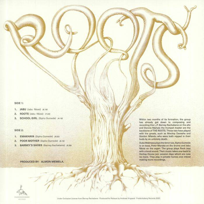 Frederiksberg Records is proud to announce the first ever reissue of the self- titled debut of 1970s South African jazz ensemble Roots. Blending jazz and funk with signature South African motifs, Roots was led by the master saxophonist and living repository of the story of jazz in South Africa, Barney Rachabane.