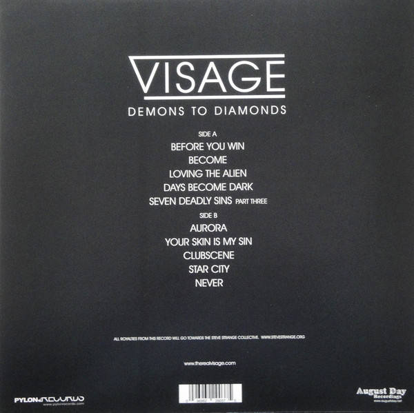 The fifth and final studio album from 80s New Romantic pioneers Visage. Featuring the studio songs that Steve Strange was working on with Visage prior to his untimely death in Feb 2015. Album cover art by Boy George. Launched to coincide with the inaugural "Steve Strange" New Romantic music festival in Wales. All Royalties from the album to be donated to the Steve Strange Statue fund. Musical contributions by Mick Macneil (Simple Minds) and Didier "Space" Marouani ("Magic Fly").