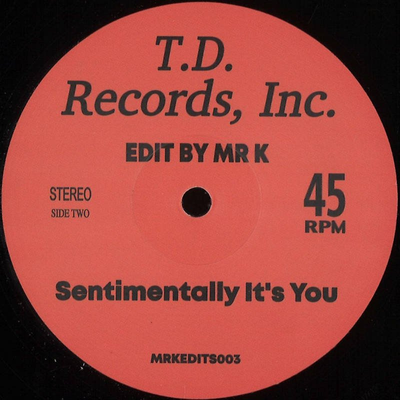 Edit master and fountain of all knowledge when it comes to the best in disco, soul and funk from the last 40 years, Mr K is back n his own self-titled label with more of his specially cooked up reworks. He kicks off here with 'You're the One For Me' which features a well known vocal that is repackaged in reverberating bass and hip singing claps. It's feel good disco gold with a groove that never lets up. The second sizzler ups the ante further with high speed drums and superbly kinetic bass funk on 'Sentimentally It's You' which hurries along with lightening synths and breathless vocals.
