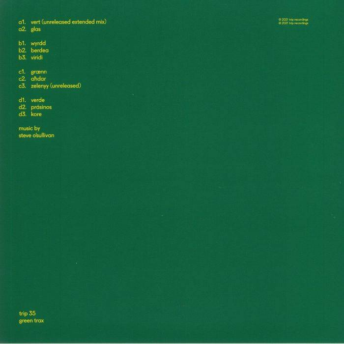 Originally released between 1995 and 1999 on his green imprint, 'Green Trax' is Steve O'sullivan's signature take on minimal techno. The album on Trip is a compilation of best works with several previously unreleased tracks that steve found on data tapes in his archive.