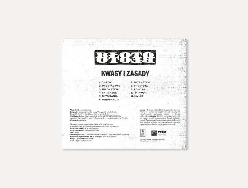 The team has always operated in the sphere of metaphors close to nature. It is similar this time, but Błoto has gone deeper into "chemical compounds" called acids and bases. Ultimately, the album's theme cleverly avoids the direct meaning of these words, playing with the convention. A set of improvised beats refers to interpersonal relationships, which nowadays often have an extreme, corrosive and explosive nature, so we need a framework that will allow us to counteract them.