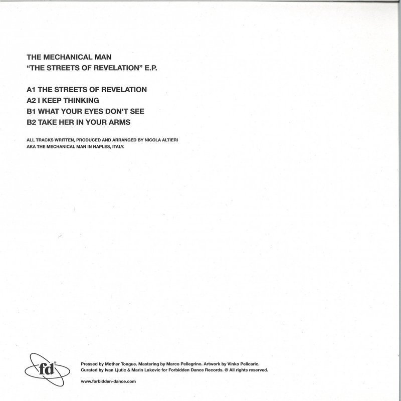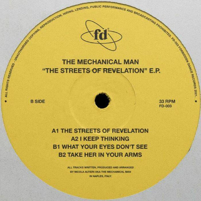 12" Vinyl with Download Code. Expanding their rich sound palette Forbidden Dance moves on to the next plateau with their third release. After releasing two legends Alton Miller and Vick Lavender, new EP is signed by a young and sound broad producer from Naples - The Mechanical Man. Drawing influences from the sound of Chicago, Philadelphia and Motor City he achieved to catch the multi essence of the house sound into a four-track journey marked with slow and fast-paced soulful corners dominated by toned vocals and stripped-down beats all the way to the underexposed lounge sections and playful intermissions.