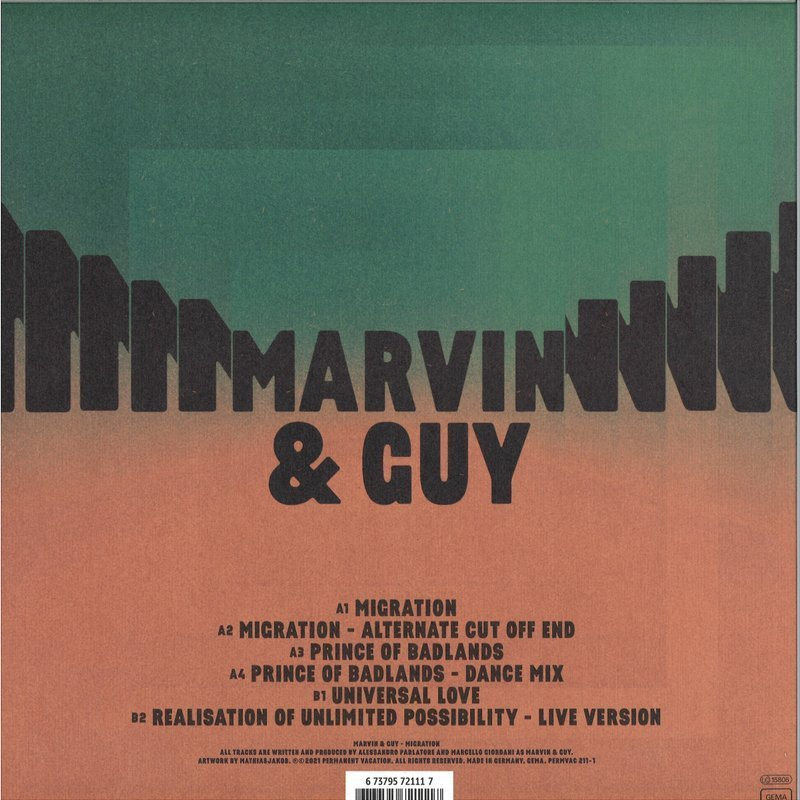 Marvin & Guy return to Permanent Vacation with the "Migration" EP, which marks their third ep for the label and a new evolution in the M&G sound.
