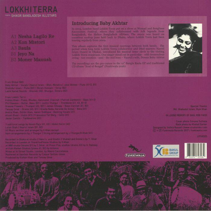 The second in the series of collaborations, this EP takes the iistener back to the beginning, capturing the first musical meetings between both bands. The period when long term Lokkhi Terra collaborator and Dhol Maestro Nazrul Islam (based in Dhaka), introduced his musical inner circle to the visiting Lokkhi Terra musicians. Friendships were forged, and musical conversations were explored. One singer stood out in particular - Dewan Baby Akthar.
