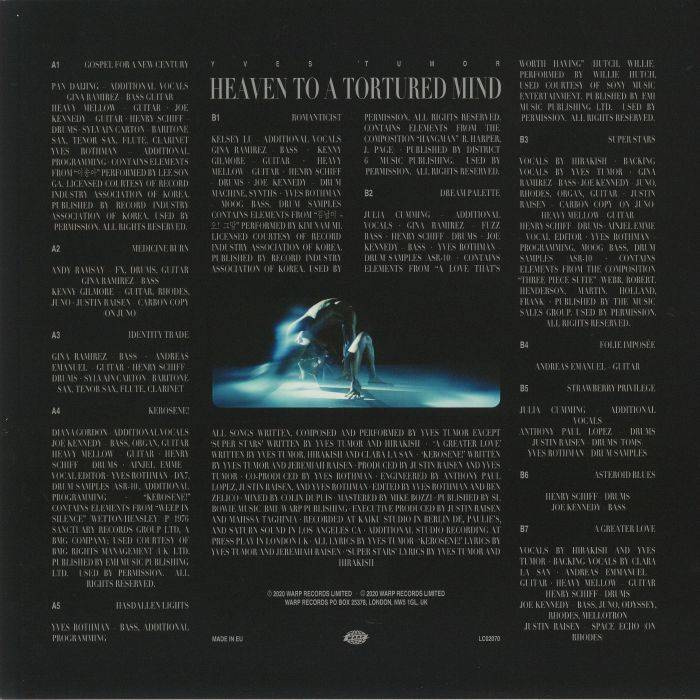 Earlier in the year, Yves Tumor announced the release of this album by releasing 'Gospel For a New Country', a low-slung chunk of post-punk pop brilliance that mixed weighty grooves and emotive vocals with flash-fried guitar riffs amd sampled big band horns. Fittingly, it's this fine track that kicks off 'Heaven To A Tortured Mind', a notably fuzzy, live-sounding set that continues his evolution from quirky electronica maker to alt-rock artist. While there are some electronic sounds dotted across the set, for the most part it's funk-rock riffs, ESG style basslines, organic drums and his own heartfelt vocals that dominate. It could win him many new fans; certainly, it's a very good album.