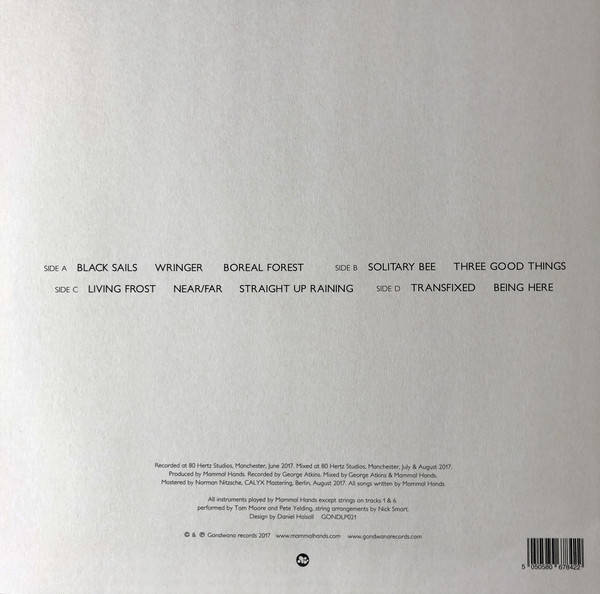 Shadow Work is their third album and the first they have self-produced. Recorded at 80 Hertz Studios, Gondwana Records home from home in Manchester, it is the result of 18 months of intensive touring and mammoth writing sessions. The energy from their exhilarating live performances has fed into the writing process and yet there is a quiet reflective side to this album, giving it an expanded emotional range that draws the listener deep into Mammal Hand's sound world. One that builds on the sound of their previous recordings, Animalia and the beautiful Floa, but is wider than ever, with the use of prepared piano strings, more prominent effects and field recordings all adding to the band's most ambitious and accomplished album to date. The striking artwork is by Daniel Halsall and reflects the organic, natural influences underpinning the band's music alongside a darker, modern minimalism.