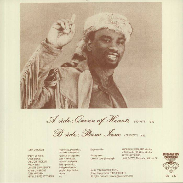 All in their early to mid 20's and born in London of Caribbean descent. The group were short lived, working on material for just a few years with the "Queen of Hearts" 12-inch being their only release. The track immediately demands the listener's attention with it's jazz piano, thumping drums, heavy bass, guitar licks and laced with funky flute, synth stabs, spacey sound effects, then dropping into soulful silky vocals and slinky rap - bringing together this killer boogie groove. Now finely re-issued for the first time by Diggers Dozen, giving this incredible rare record a more deserved chance to be heard and loved!