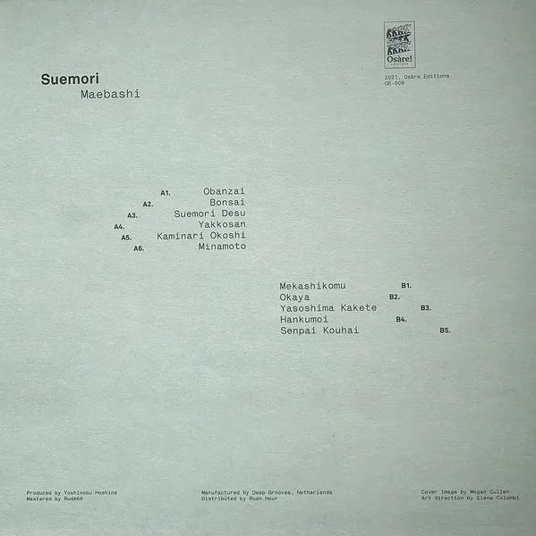 In Japanese history Suemori refers to a castle constructed in 1548 by Lord Nobuhide. A short-lived structure, it was abandoned just over a decade later and subsequently- in the many years between then and now - all but vanished from the face of the Earth. A solitary stone stelae now marks the site, but whether impermanence was really a central theme to Suemori forming isn't clear. Nevertheless, their growing, reforming and restructuring sound certainly fits with the idea.