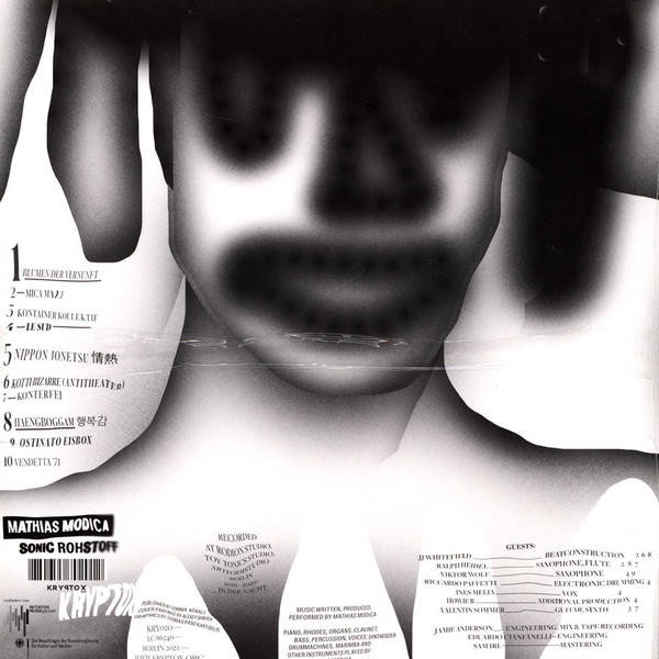 Mathias Modica's "Sonic Rohstoff" is the new album on Berlin-based label Kryptox Music, Toy Tonics' and Gomma Records' sub label for new forms of Jazz & Electronica. Over the past two decades, Mathias he has made a name for himself by discovering and breaking new talent and styles of music. He produced albums with James Murphy and Nancy Whang of LCD Soundsystem, Peaches, Asia Argento, The Rammellzee and WhoMadeWho just to name a few.