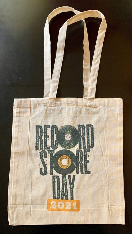 Torba bawełniana eko, idealna na płyty winylowe! Bardzo pakowna (do 20 płyt), wygodna, na ramię. Ozdobiona logo RSD 2021. Torba wytrzymuje ciężar do 15 kg. Wymiary torby: