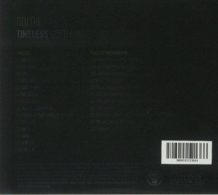 Goldie's incredible debut album Timeless celebrated its 25th anniversary last autumn, so to celebrate this landmark he's decided to deliver an expanded edition. The original two-disc album, a genuine game-changer that showed the musical potential of the then relatively new musical form of drum & bass, is replicated in full in fully remastered form. Those who are new to the set will be blown away by the 21-minute opener, 'Timeless' (a suite of three tracks including peerless D&B anthem 'Inner City Pressure', as well as other standouts such as weighty jungle workout 'Jah The Seventh Seal' and more soulful numbers 'Angel' and 'You & Me'. Confirmed fans meanwhile will love disc three, where remixes, rarities and unreleased material - mostly from Goldie's personal stash of VIP versions - take centre stage.