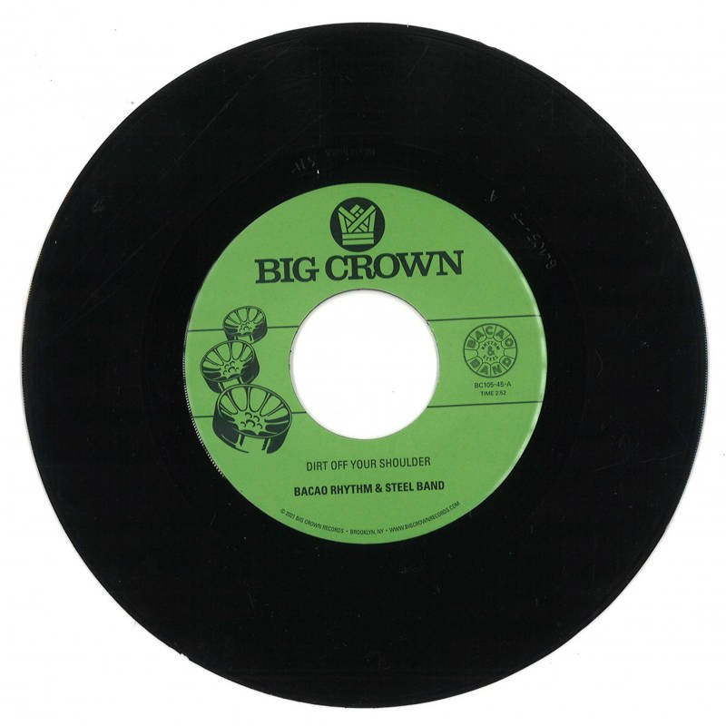 Bacao Rhythm & Steel Band, the kings of "wait, what is this!!!" are back with another two-sider that has a little something for everyone. Both of these songs are pulled from their forthcoming full length album Expansions. The A side is a gritty, gully, and neck snapping cover of the Timbaland produced Jay-Z club hit "Dirt Off Your Shoulder". The signature crushing Bacao drums start the show and the moment they start playing the top line on the steel pans all bets are off. They push the tune to new heights and places adding brass arrangements and working around the original riff never losing the groove. The way they walk the line between the original and making it their own will woo Hip Hop heads and Funk enthusiasts alike. The B side finds BRSB taking it straight to the discoteque and ushering everyone to the floor as they cover Sylvester's underground classic "I Need Somebody To Love Tonight". While Bacao have laid down a few four on the floor numbers on previous albums this is the first one making its way to a 7" and we are sure it will get their music into a new sector of DJs playboxes.