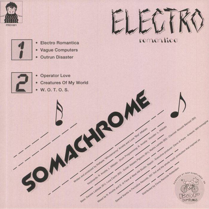 "Electro Romantica" covers the content aswell the inspiration for this beautiful record produced by Somachrome aka Raffaele "Whodamanny" Arcella and Luca "Bop" Affatato! The duo created an alternative romantic reality where the autobahn connects Detroit to New York to Napoli, and where heady electro, Hi-NRG, and post-punk grooves merge with narcotic new wave, interstellar funk, and psychedelic rock. The result is an epic adventure equally suited for dancefloor mania as it is for coastal highway cruising joined by the mysterious forces of the night. Another essential Periodica Record!!