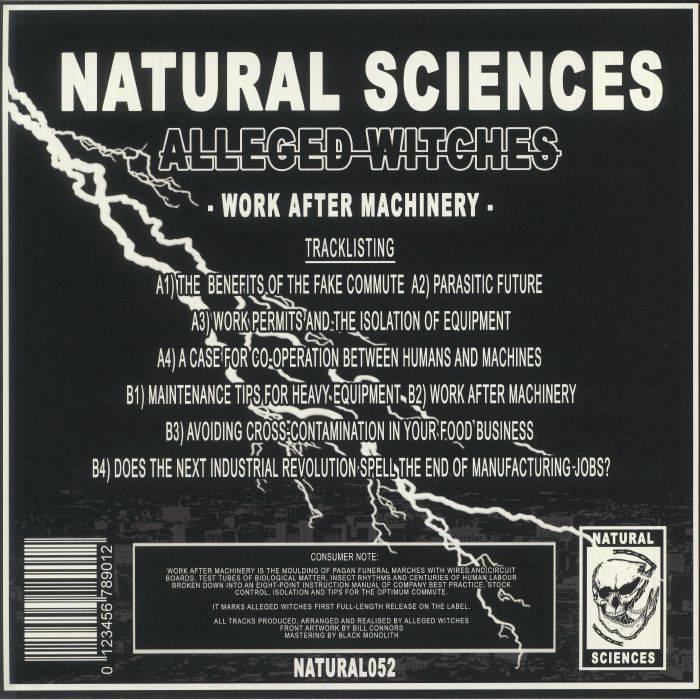 Alleged Witches debut album breaks down centuries of human labour into an eight-part instruction manual for company best practice, stock control and tips for the optimum commute. The final break from nature, it's Pagan funeral marches, insect rhythms and doomed ambience for one last trip up the river. Artwork from Bill Connors.
