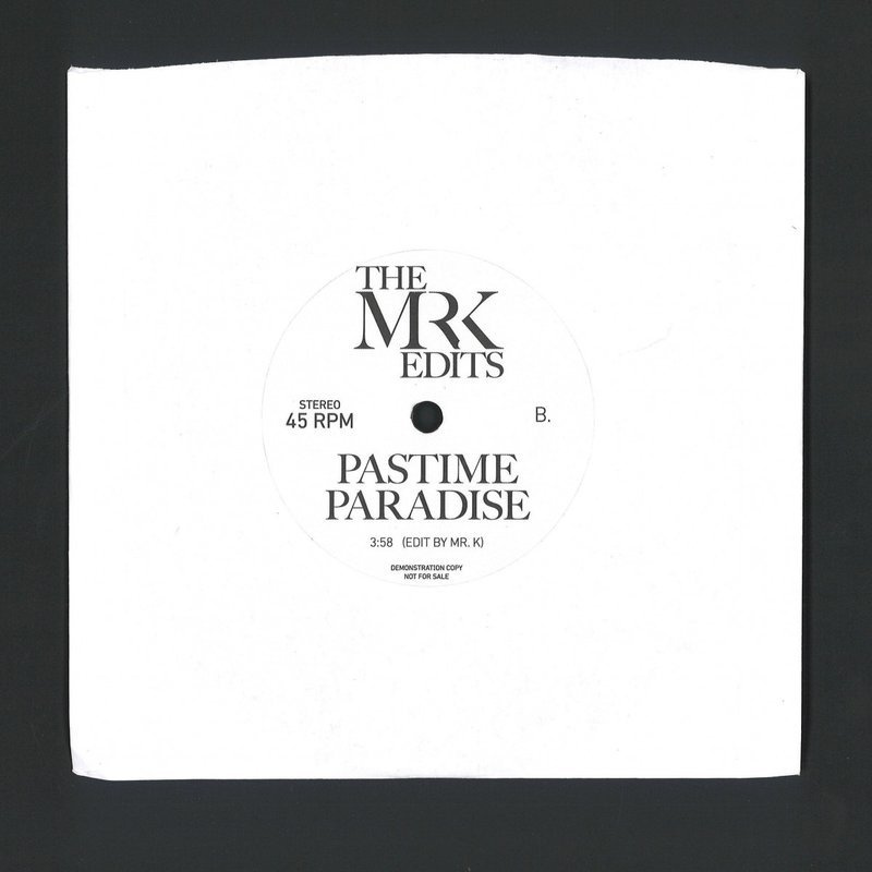 In keeping with the orchestral soul mood, Mr. K turns to Stevie Wonder’s “Pastime Paradise” for the flip. Whereas “Black Gold” paints a portrait of a magical land, Stevie’s lyrics on “Pastime Paradise,” originally issued in 1976, are a penetrating look at the very earthbound concerns of modern society and its follies, an urgent message to look ahead rather than languish in dreams of the past. The sensitive string accompaniment provides just the right amount of gravitas and emphasis to Stevie’s voice without overwhelming it, while the hare krishna-inspired tambourine keeps the rhythm effectively. Mr. K’s edit again keeps things true to the original, simply providing a subtle intro that uses the tambourine rhythm to lead into the body of the song.
