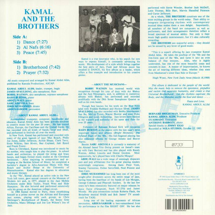 Kamal Abdul-Alim is an accomplished teacher, bandleader, composer and trumpeter who has been making high class music for many years. It has taken him to gigs all over the world and to working with all manner of bands, big and small. Drawing on the post-box sounds of the 50s and layering in 60s free-form jazz with his own fine textures, he is a real underrated artist and master of improv. This record includes hugely sought after jazz-dance bomb 'Brotherhood' as well as four other lengthy classics.